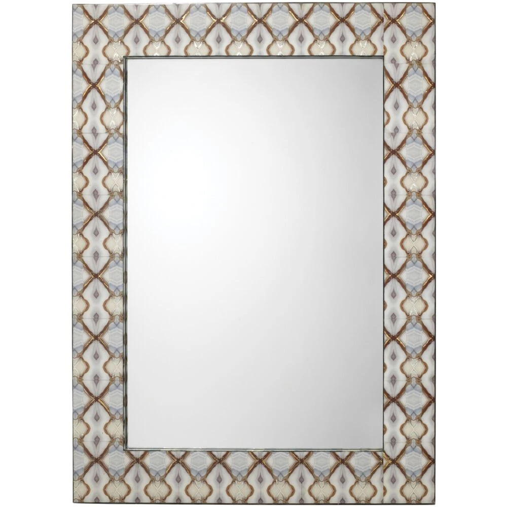 The design on the frame of this alluring mirror is taken from photos of agate repeated in a way that gives the impression of looking through a kaleidoscope. The hand applied gold leafing adds another layer to create this incredible finish.