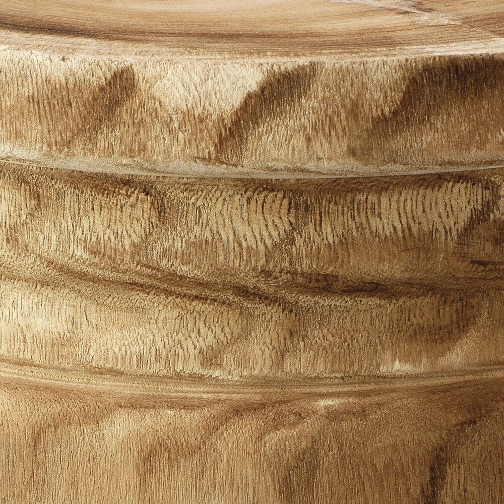 An organic rough wood turned stool with a strong and very attractive wood grain pattern, each one is unique.