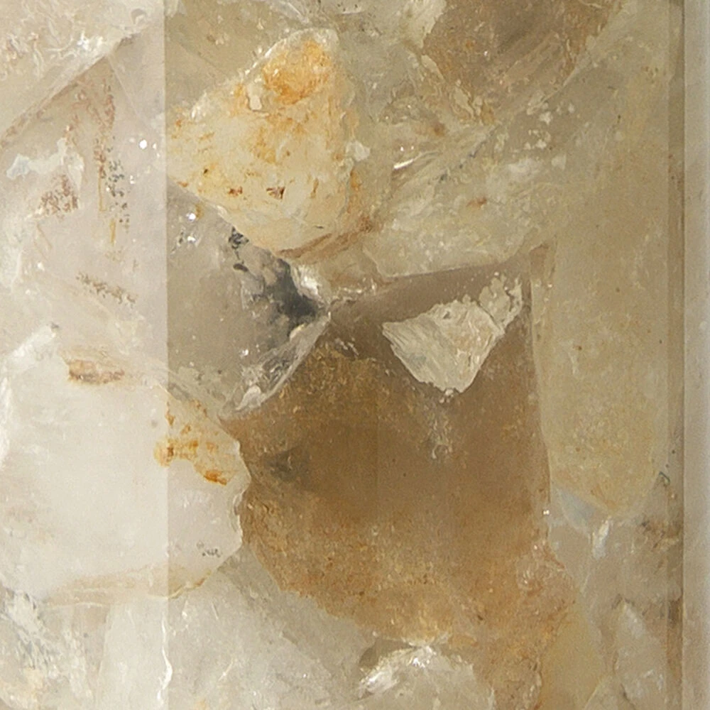A slim cylinder of natural calcite forms the base of the Peyton lamp. The beauty of the natural stone is allowed to shine here and the rest of the lamp is kept simple with a square acrylic base, a white linen drum shade, and a cylindrical crystal finial. No two pieces of calcite, and no two lamps, will be identical. Made of natural Calcite stone. Each stone is unique, colors will vary and no two will be identical.
