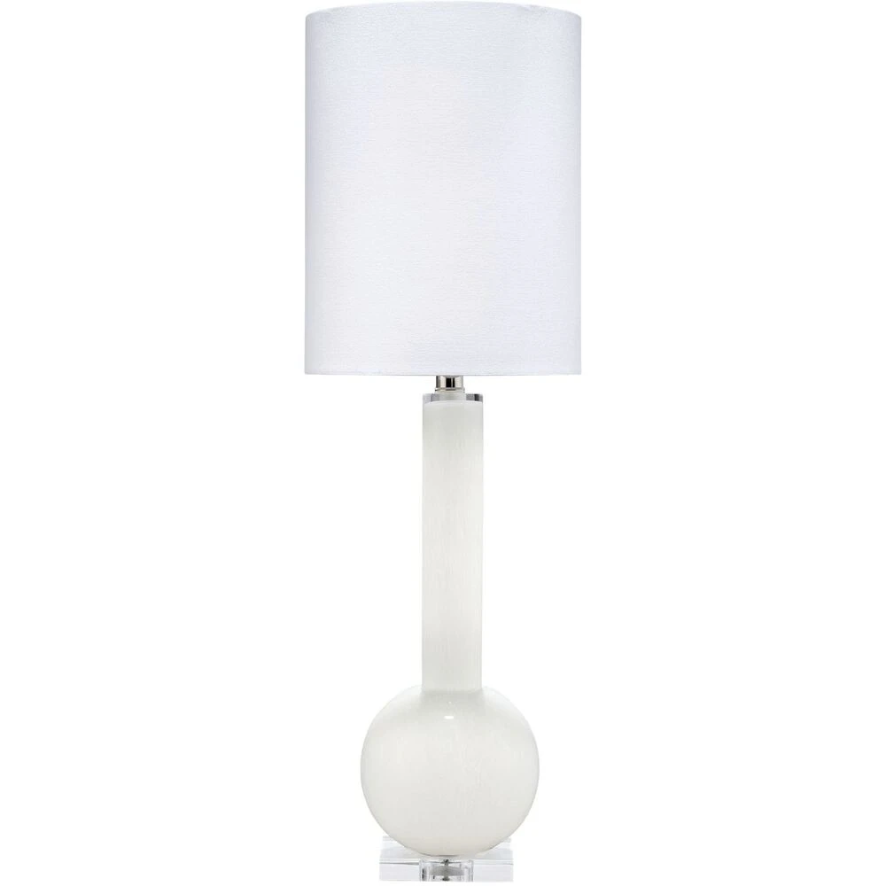 A quietly modern glass lamp in a graceful white glass.
